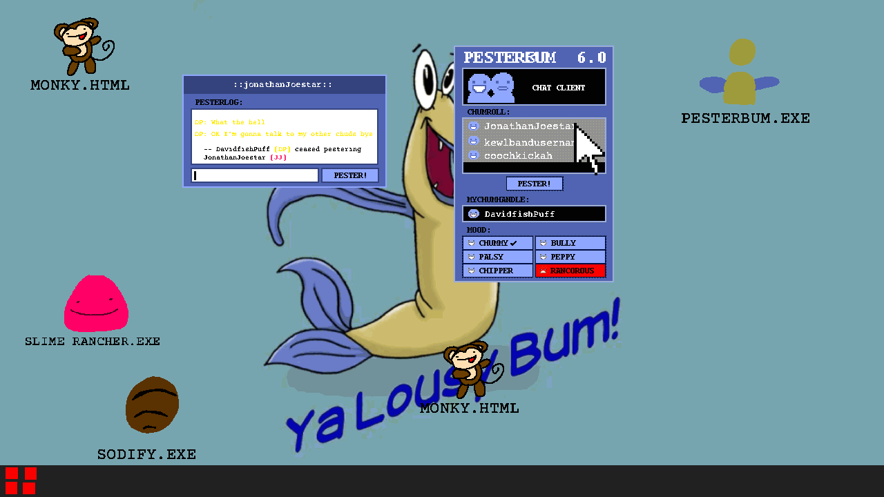 -- kewlBandname [KB] began pestering davidfishPuff [DP] at 11:41 KB: Happy birthday katelyn KB: Are you not up yet DP: I am DP: Foolish D KB: Im gonna deliver my gift in person later KB: Is now fine? DP: I just got up a few minutes ago KB: And it took you until now to answer me KB: Smh DP: I said a few minutes ago DP: Illiterate KB: Whatevah KB: When youre ready for the gift of a lifetime let me know DP: I'M WORKIN' ON IT!! KB: How has your birth been so far DP: "I just got up a few minutes ago" DP: Dyslexic KB: I meant like the vibe DP: I dunno man KB: Whatevah -- kewlBandname [KB] ceased pestering davidfishPuff [DP] |